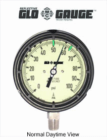 McDaniel offers liquid-filled gauges for applications involving vibration or pulsation. Glycerin is an excellent damper of bourdon tube movement. Emersion of the entire measuring assembly in a protective liquid envelope provides lubrication and shuts out corrosive or dirty atmospheres — thereby minimizing wear of moving parts and prolonging gauge life significantly. |